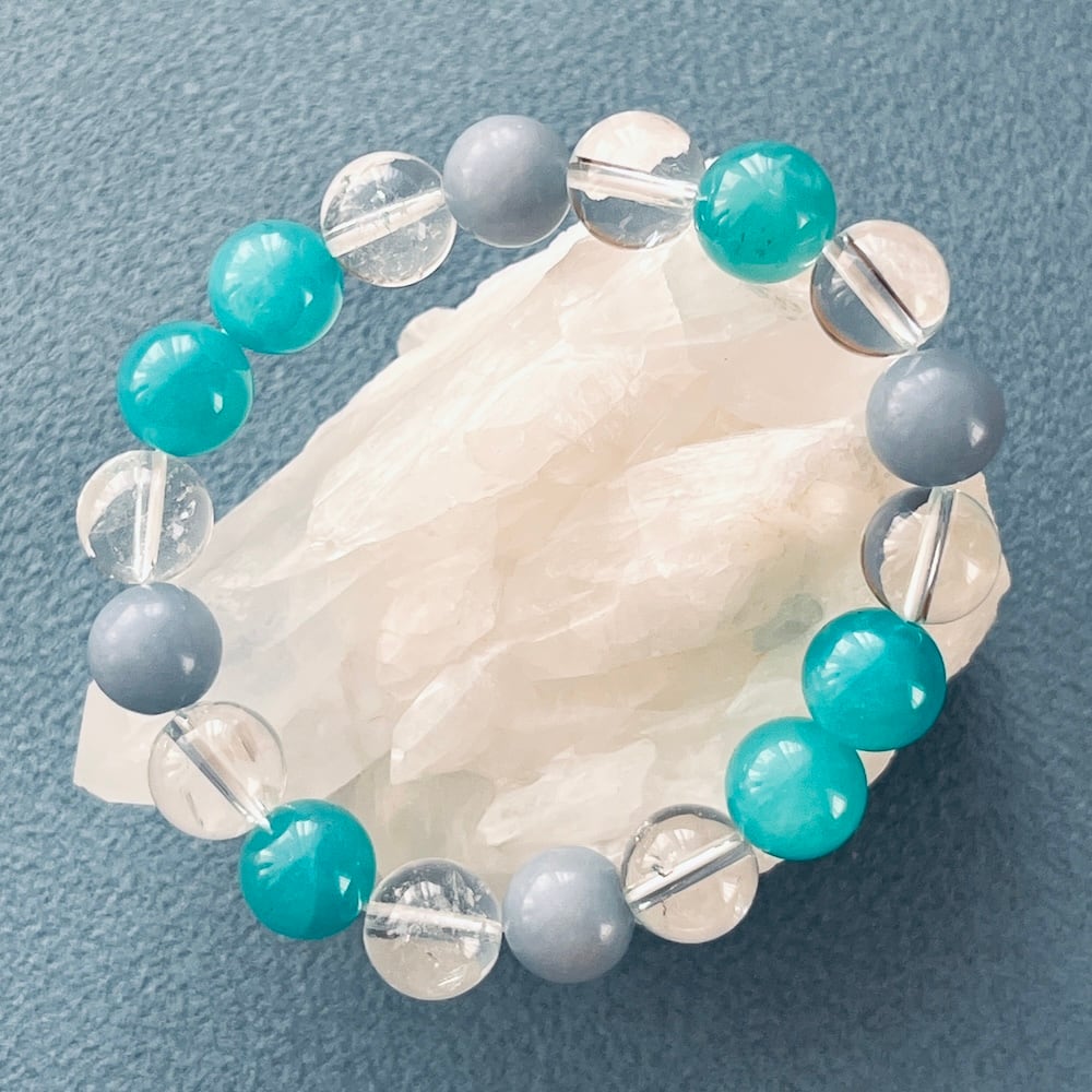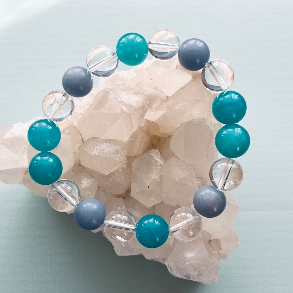 使用しているのは アマゾナイト、エンジェライト、そして 水晶。